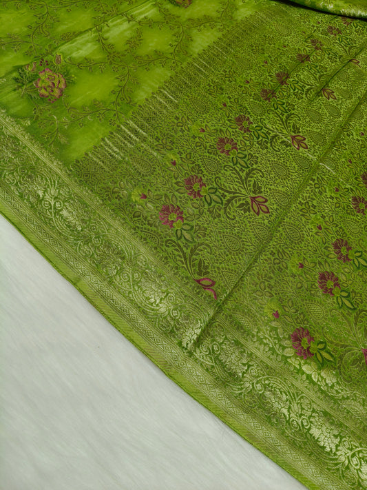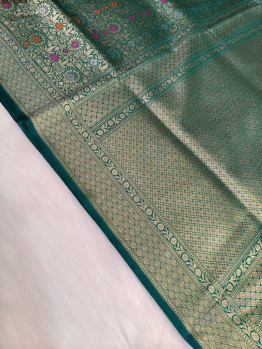 Banarasi Tanchhui Minakari Saree Green Shade With Multi Color Mina BTS020 25% Discount