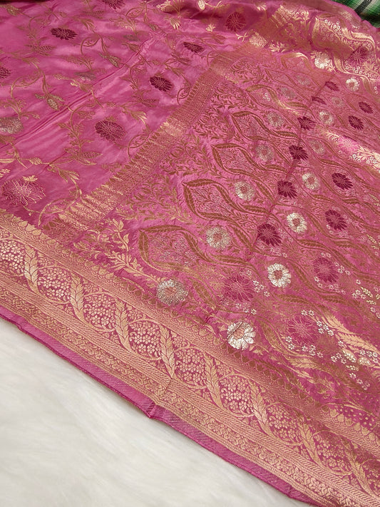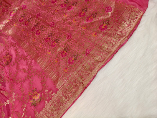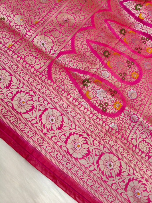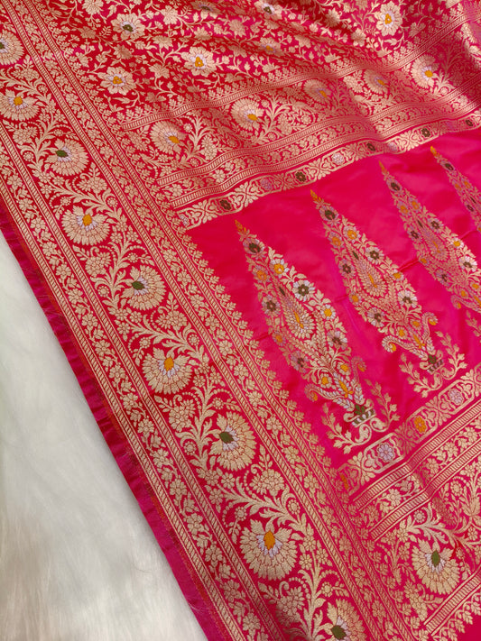 Banarasi Tanchhui Minakari Saree In Rani Pink Shade With Multi Color Mina BTS012 25% Discount