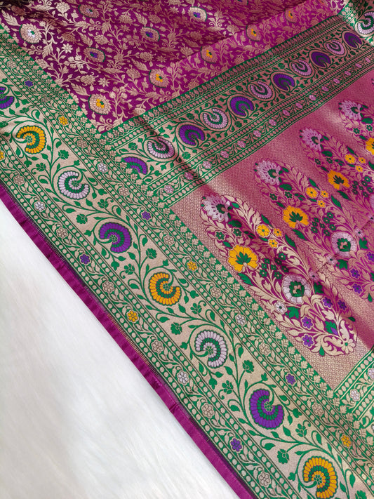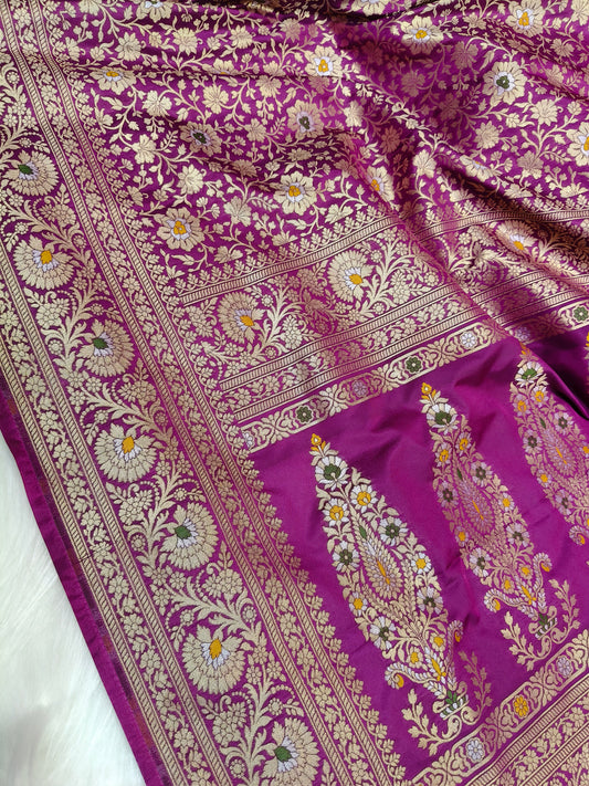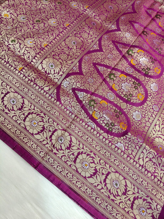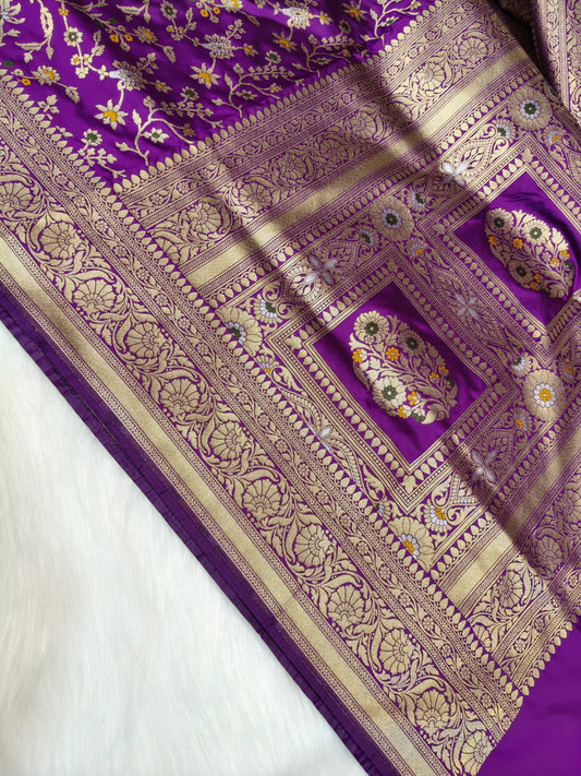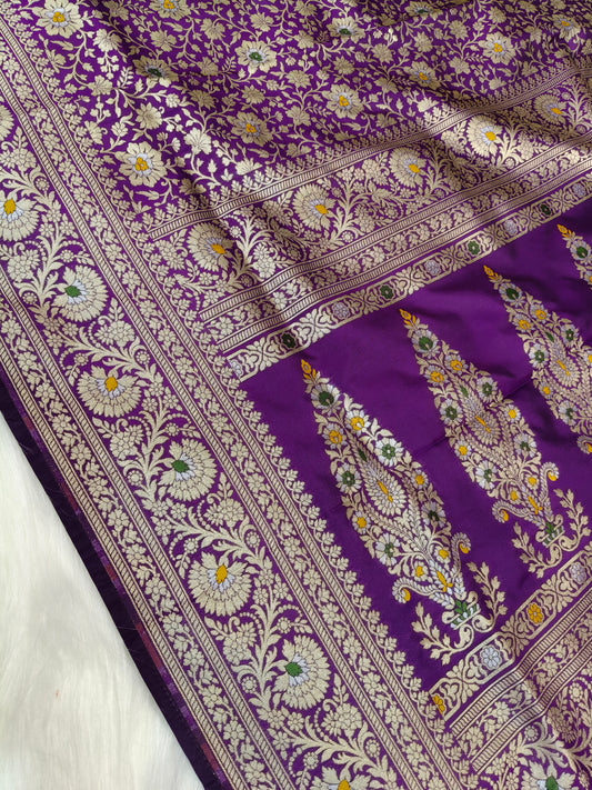 Banarasi Tanchhui Minakari Saree Dark Purple Shade With Multi Color Mina BTS018 25% discount
