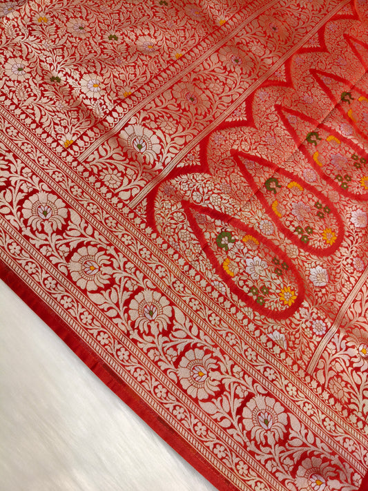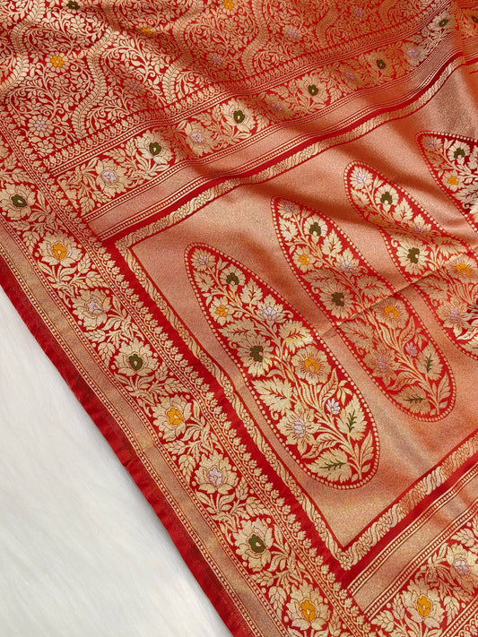 Banarasi Tanchhui Minakari saree Red Shade With Multi Color Mina BTS016 25% Discount