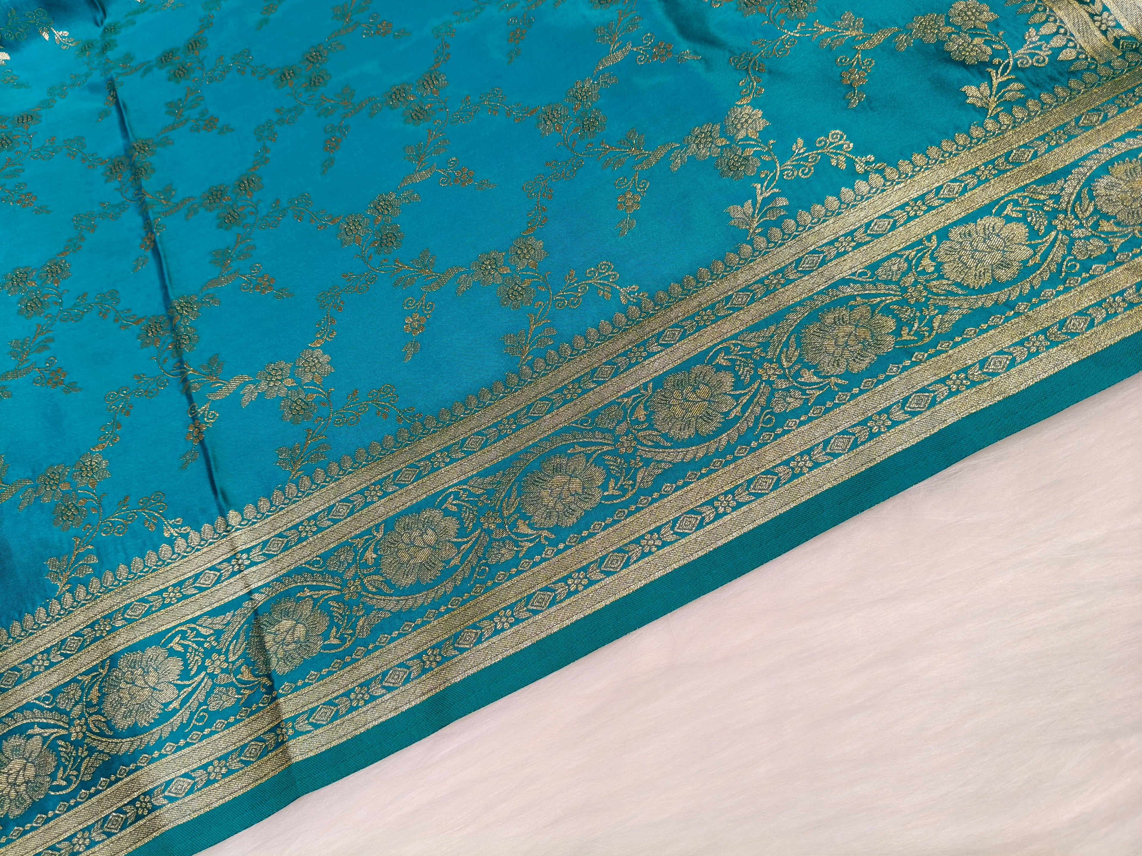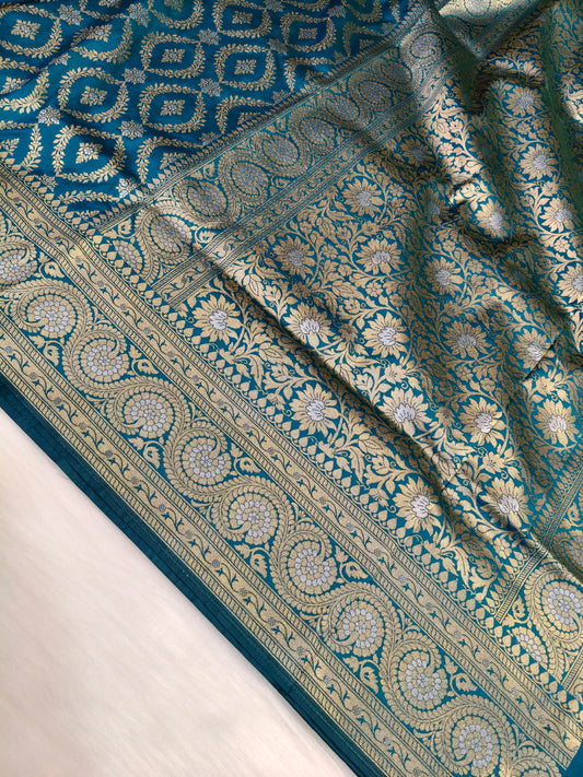 Banarasi Silk Cutwork Saree Teal Blue Shade With Rupa Minakari BCS007 25% Discount