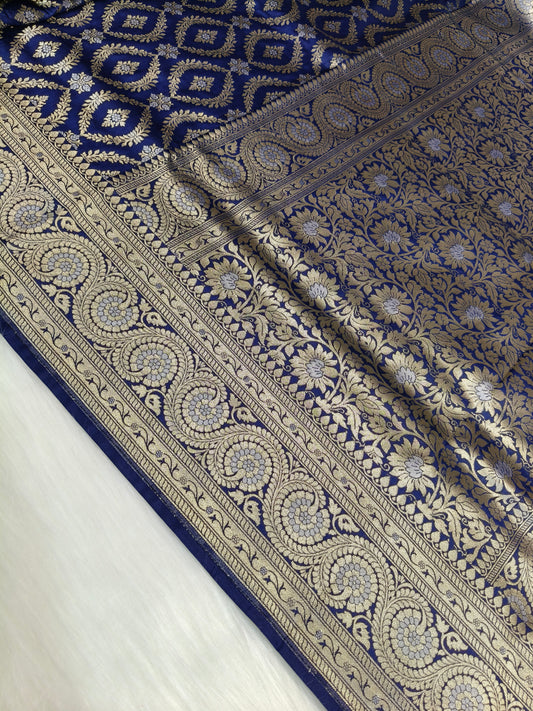 Banarasi Silk Cutwork Saree Navy Blue Color With Rupa Minakari BCS008 25% Discount