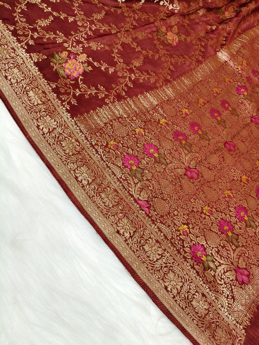 Banarasi Tanchhui Minakari Saree Deep Red Shade With Multi color Mina BTS011 25% Discount