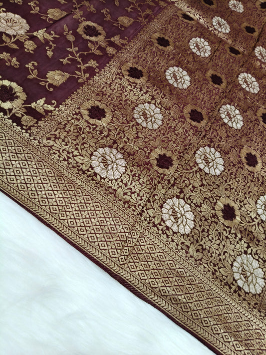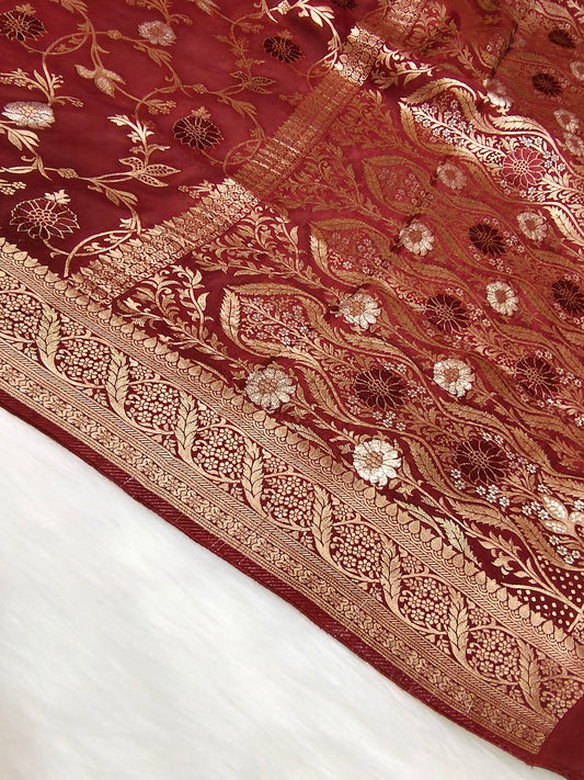 Crepe Banarasi Silk Saree Maroon Shade Floral Jaal Pattern CBS003 50% Discount