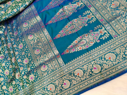 Banarasi Tanchhui Saree Peacock Shade With Multi Color Mina BTS002 15% Discount