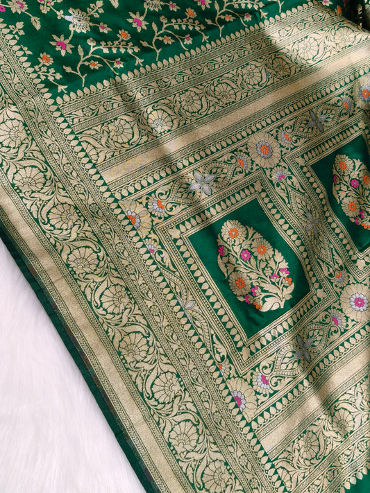 Banarasi Silk Cutwork Saree Green Shade With Multi Color Mina BCS001 15% discount