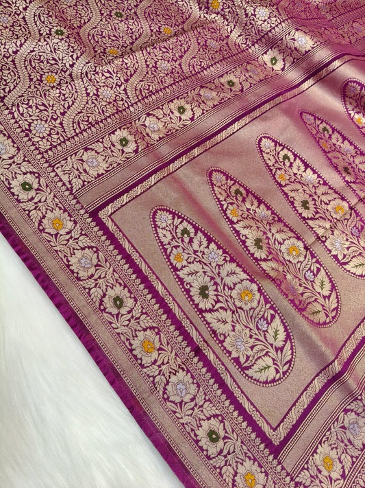 Banarasi Tanchhui Minakari Saree Dark Purple Shade With Multi Color Mina BTS018 25% discount