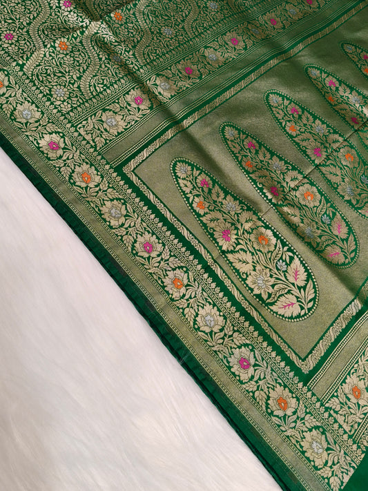 Banarasi Tanchhui Minakari Saree Green Shade With Multi Color Mina BTS020 25% Discount