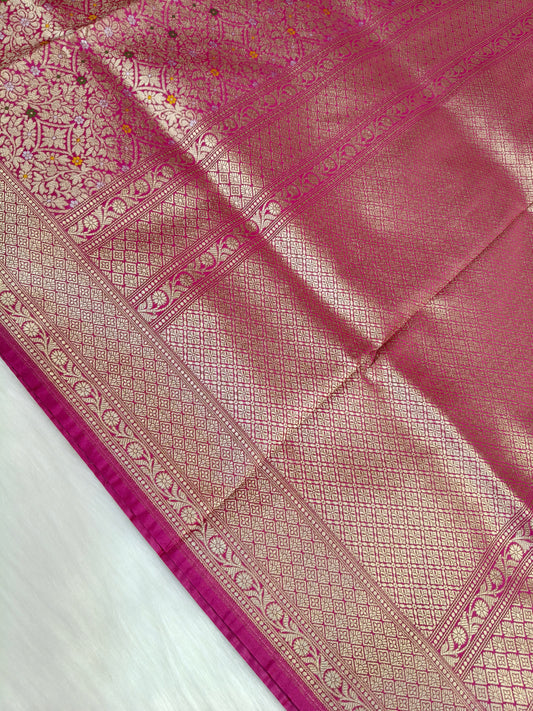 Banarasi Tanchhui Minakari Saree In Rani Pink Shade With Multi Color Mina BTS012 25% Discount